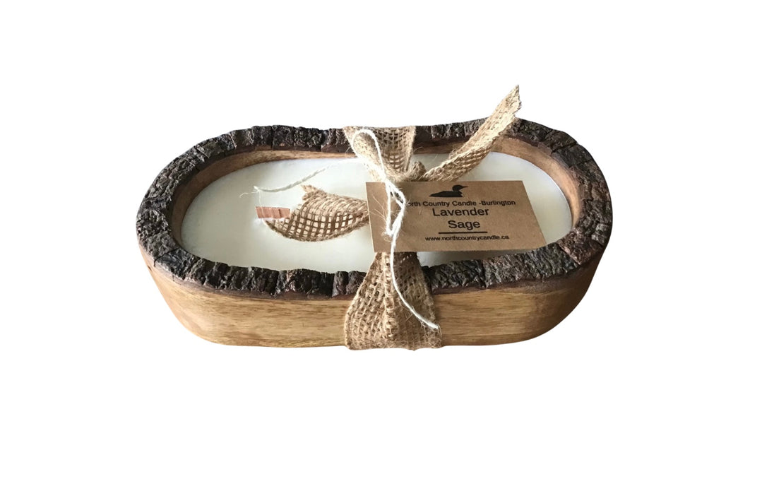 This dough bowl comes complete with jute fabric, a hang tag and North Country Candle fridge magnet.