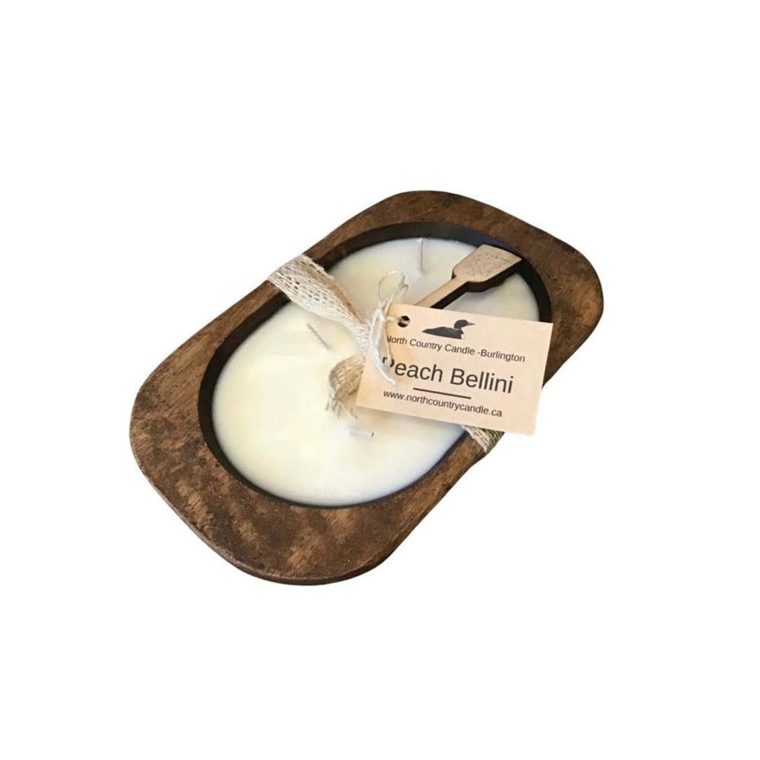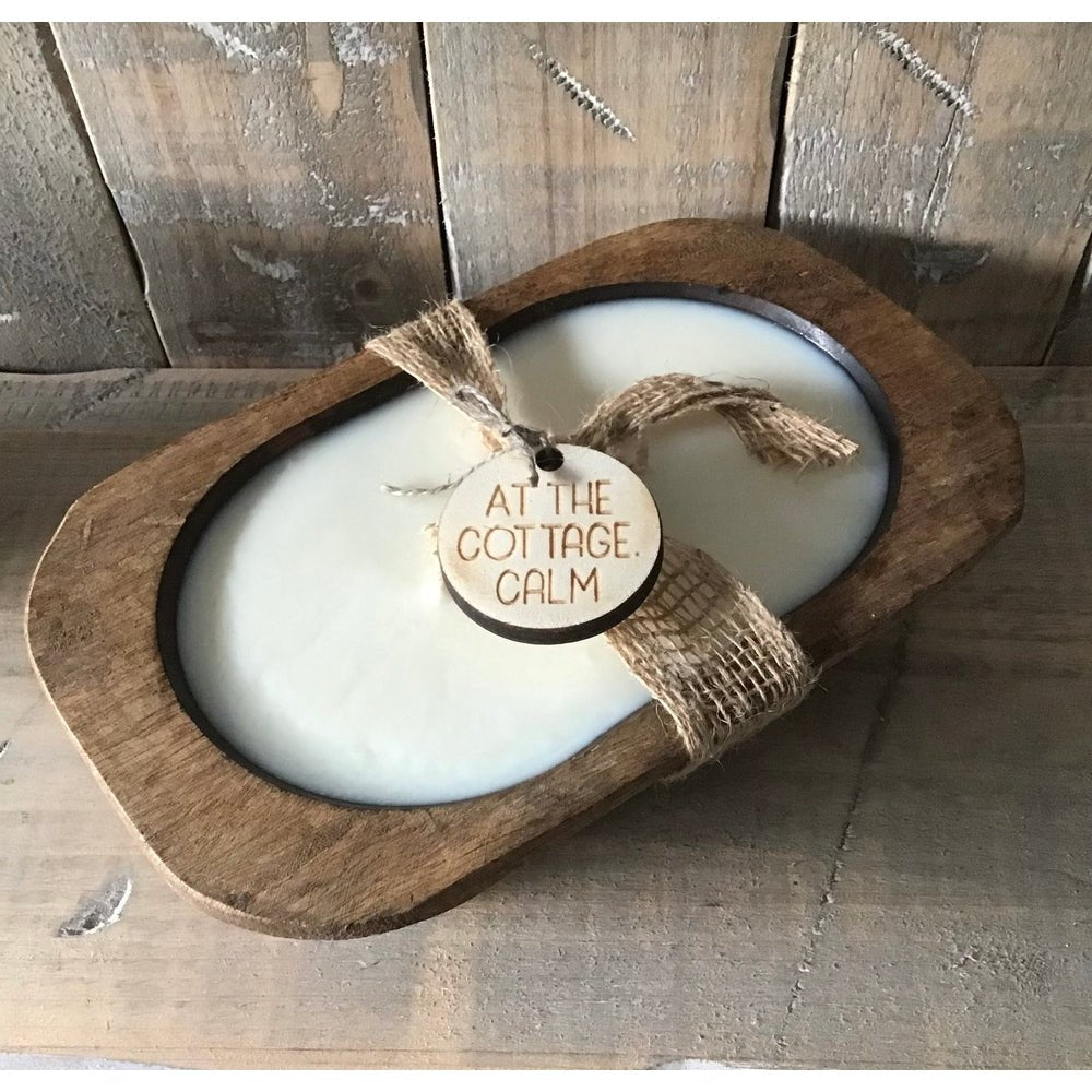 Measuring 9.5” x 5” x 2.5”, this is a thick-walled bowl that holds approximately 14 oz of wax. Poured with cotton core wicks. These bowls are completely flat on bottom, providing a more stable bowl.