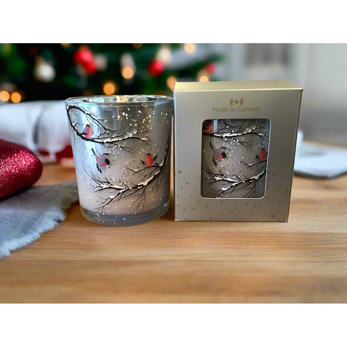 Experience the warmth of the season with the Christmas Town - Cranberry Spiced 10 oz Candle. Hand-poured using eco-friendly soy wax and infused with a phthalate-free fragrance, this cotton-wicked candle captures the essence of a winter forest with delicate bird imagery. Packaged in a matching peek-a-boo window box, it makes an elegant and thoughtful gift for holiday celebrations.