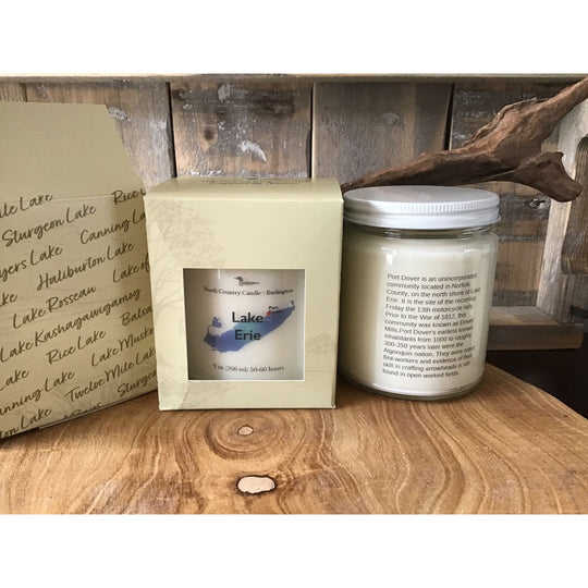 Each candle has a lake history on reverse side of the jar. Comes Gift Boxed.